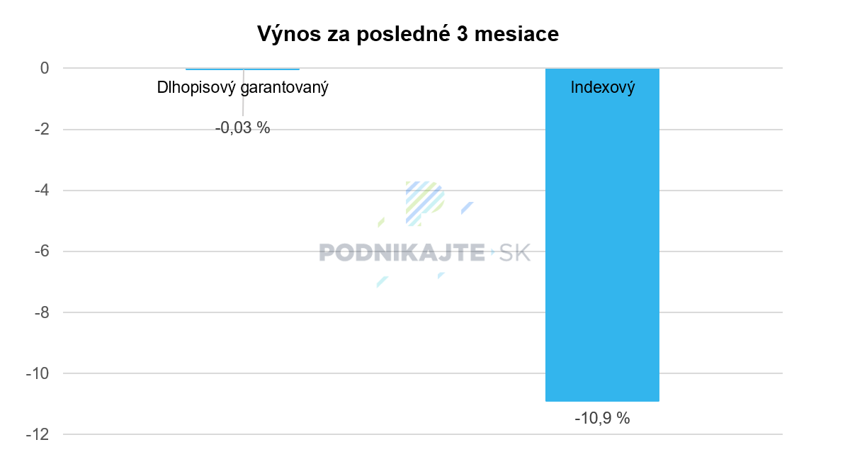 Vidíme, že „strata“ v indexovom fonde sa znížila o takmer polovicu, na –5,68 %. Oproti tomu sa ale strata v dlhopisovom fonde zvýšila, a to 14 násobne!