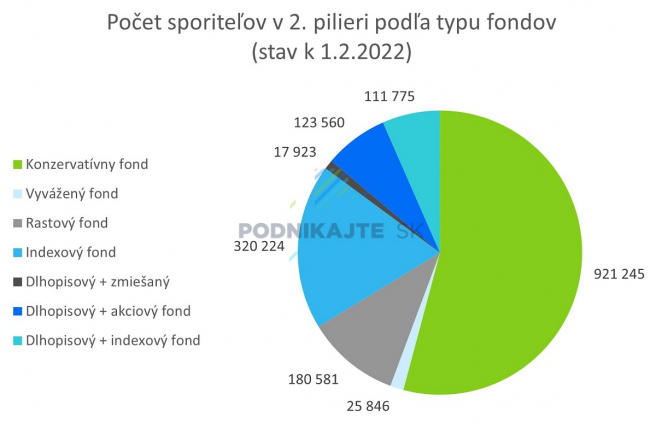 Druhý pilier – rozloženie sporiteľov podľa typu dôchodkových fondov