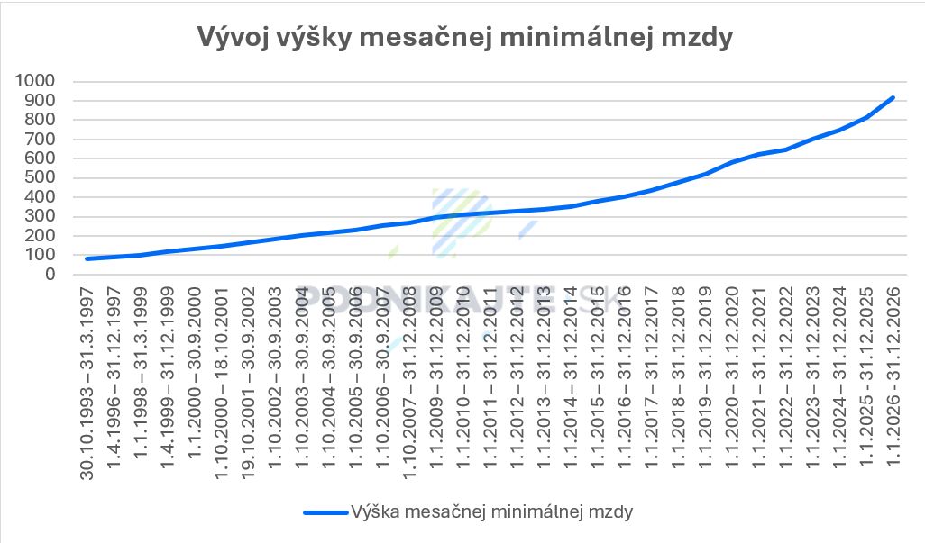 Vývoj minimálnej mzdy v rokoch 1993 - 2026