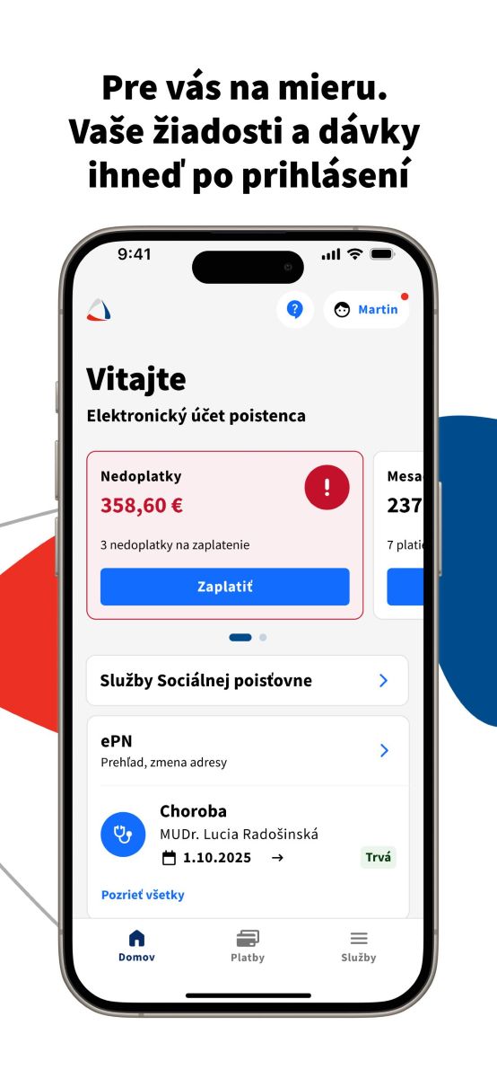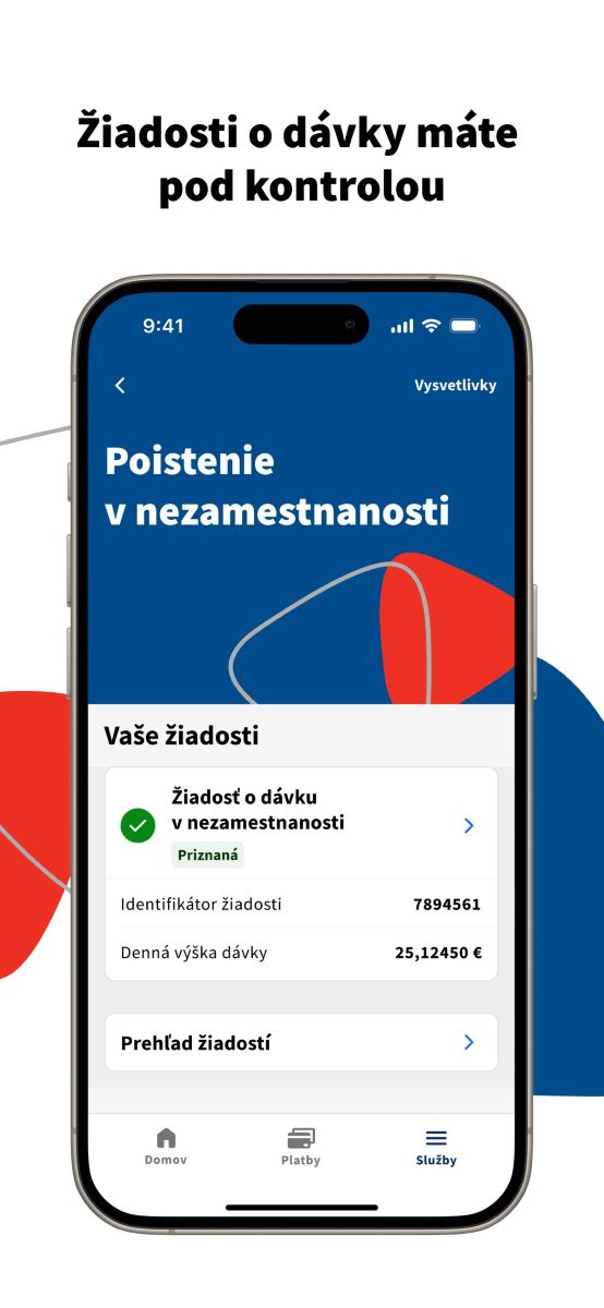 - má pod kontrolou svoje žiadosti o dávky. Aplikácia informuje o ich aktuálnom vybavovaní (napr. ePN – elektronická práceneschopnosť, dôchodok, či dávka v nezamestnanosti);