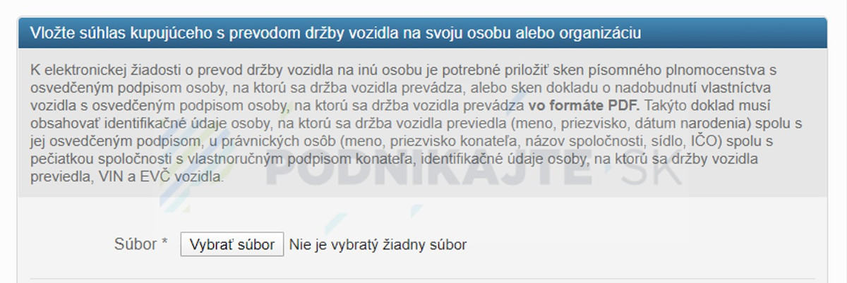 - buď plnomocenstvo s osvedčeným podpisom osoby, na ktorú sa držba vozidla prevádza (kupujúceho), alebo