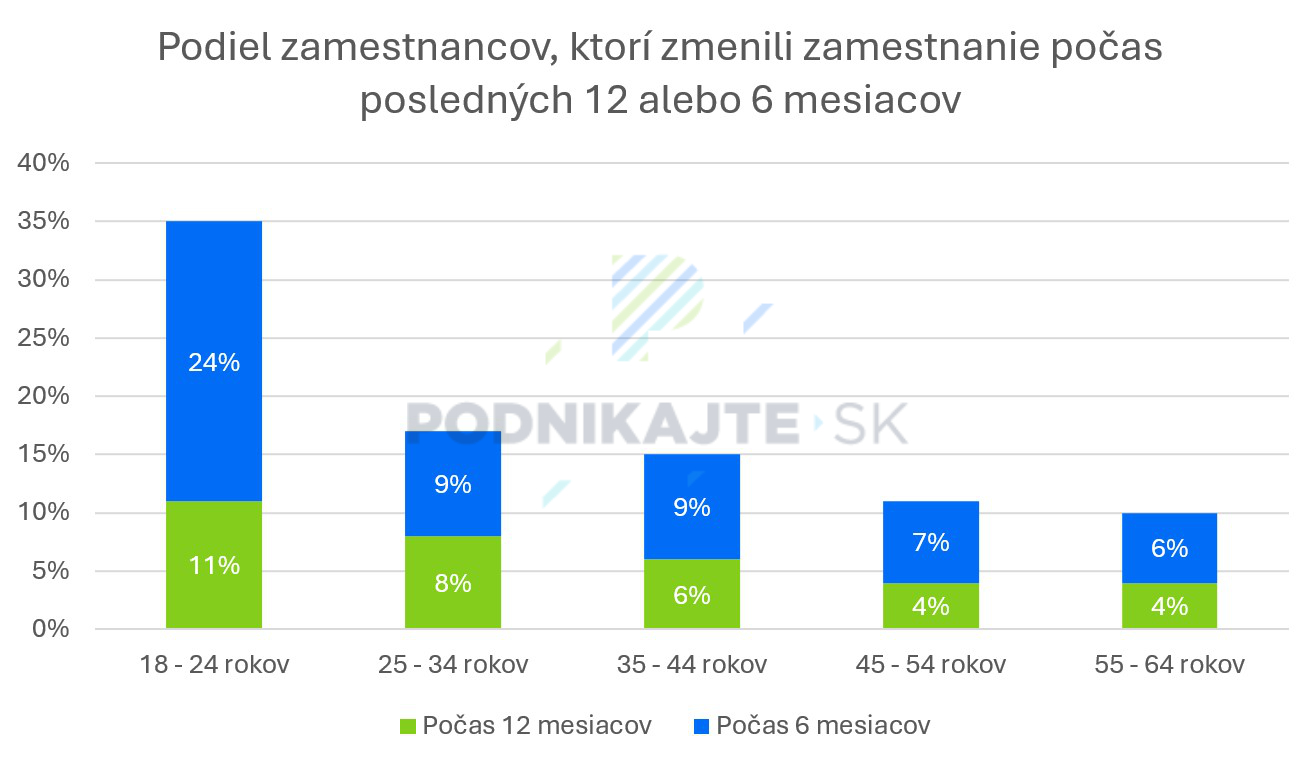 Podľa spomínaného prieskumu za posledný rok zmenilo zamestnávateľa 14 % zamestnancov a zamestnankýň na Slovensku. Ide najmä o najmladších ľudí na trhu práce, teda vo veku 18 – 24 rokov. Viac ako tretina z nich zmenila pôsobisko v priebehu posledných 12 mesiacov, štvrtina za posledných 6 mesiacov. Ako uvádza spoločnosť Alma Career Slovakia, mnohí personalisti hovoria o novom trende, ktorý sa prieskumom potvrdzuje – generácia Z sa nebojí v prípade nespokojnosti zmeniť prácu a k zamestnávateľom necíti takú silnú väzbu ako predošlé generácie. Pre porovnanie, pokiaľ ide o vekovú skupinu zamestnancov 35 – 44 rokov, zamestnávateľa za posledných 12 mesiacov zmenilo 15 % z nich. U ľudí starších ako 55 rokov to bola desatina.